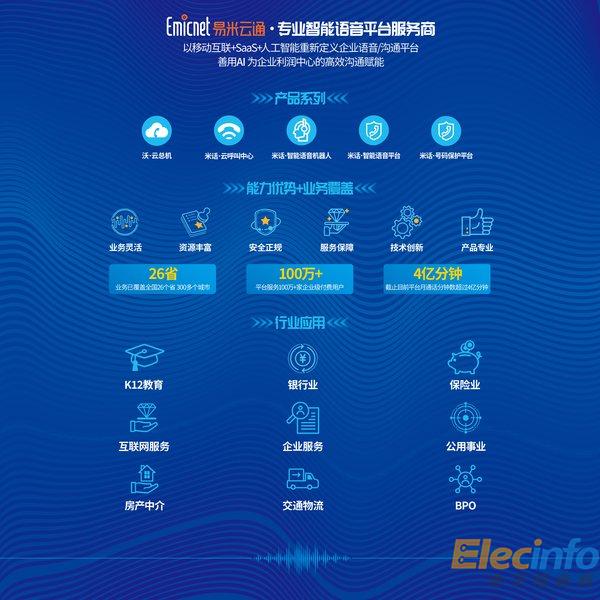 專業(yè)智能語音平臺服務(wù)商 -- 易米云通從創(chuàng)立之初就意識到軟件定義語音 (Software-Defined Voice, SDV) 的重要性,隨著云計算和AI的發(fā)展,易米云通為企業(yè)用戶帶來了無需硬件部署,即開即用的米話系列專業(yè)云通信服務(wù),并按照 SaaS 方式提供隨時按需使用。截至目前,易米云通的服務(wù)已覆蓋全國26省、300+城市、發(fā)展了100萬+企業(yè)級付費(fèi)用戶,平臺承載語音話務(wù)量已達(dá)每月近4億分鐘,服務(wù)了包括銀行保險、公用事業(yè)、K12教育、互聯(lián)網(wǎng)服務(wù)、企業(yè)服務(wù)和交通物流等在內(nèi)的眾多行業(yè)頭部客戶。