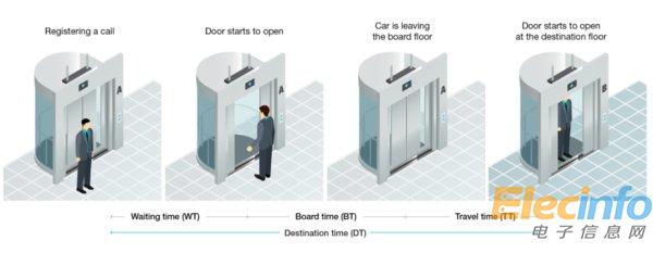 設(shè)計(jì)現(xiàn)代電梯系統(tǒng)的關(guān)鍵目標(biāo)之一是縮短所有乘客到達(dá)目的樓層的平均時(shí)間。例如,在一幢16層的商業(yè)辦公樓中,到達(dá)目的樓層的平均時(shí)間約為70秒,平均等待時(shí)間約為25秒 - 但該時(shí)間會(huì)根據(jù)當(dāng)天的實(shí)際情況而有所變化。在午餐時(shí)段,由于人員進(jìn)出辦公樓會(huì)產(chǎn)生雙向流量,因此電梯到達(dá)目的樓層的時(shí)間往往比早上長(zhǎng)。