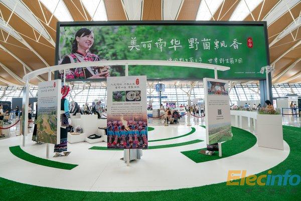 在此次的媒體支持中,浦東T2航站樓的創(chuàng)意展臺,尤為引人注目,該區(qū)域以展示云南南華縣菌類產(chǎn)品和云南名族特色為主,通過造型、多媒體、圖片及演藝等形式展現(xiàn)云南的風土人情和特色。整個展館采用開放式空間設(shè)計,原木色和綠色為主色調(diào),并使用白色加以點綴。展館分為松茸展示區(qū)、民族手工藝特色區(qū)、舞臺表演互動區(qū)及品嘗區(qū)。整個展館功能齊全、分區(qū)合理。