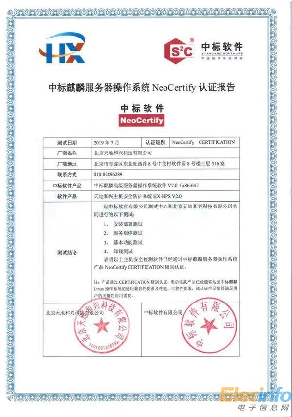 天地和興 中標麒麟測試認證 HX-HPS V2.0