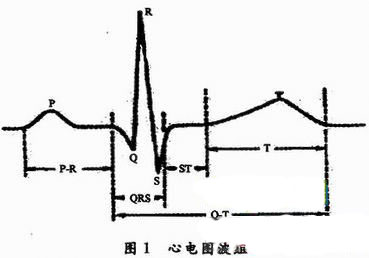 (2)QRS波群。典型的QRS波群包括三個緊密相連的波,第一個向下的波稱為Q波,繼Q波后的一個高尖的直立波稱為R波,R波后向下的波稱為S波。因其緊密相連,且反映了心室電激動過程,故統(tǒng)稱為QRS波群。這個波反映了左、右兩心室的除極過程。