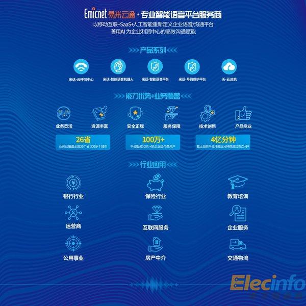 在產品研發(fā)方面,易米云通自主研發(fā)產品包括米話·云呼叫中心、米話·智能語音機器人、米話·號碼保護平臺、沃·云總機等系列專業(yè)智能語音服務,還于今年推出智能語音平臺4.0,主打功能包括:智能提醒、智能復購、智能增購、智能客服、智能質檢和人機協(xié)作等。