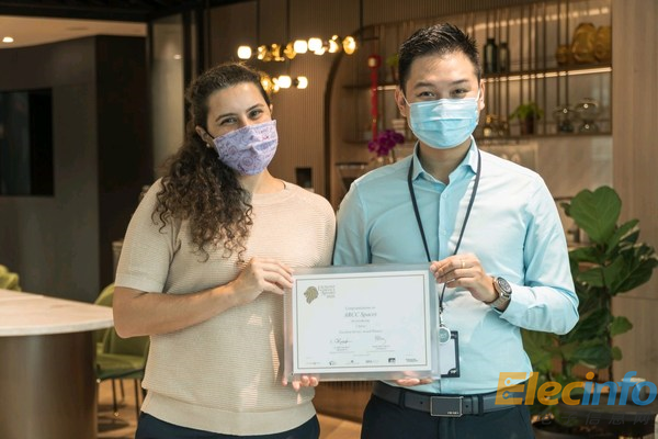 艾克商務(wù)中心新加坡運(yùn)營團(tuán)隊(duì)成員Maeva Sauve(左)和Hanson Chong(右)獲頒EXSA榮譽(yù)證書