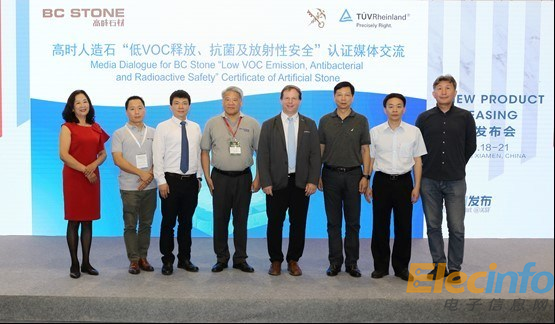 5月18日,德國(guó)萊茵TUV大中華區(qū)(以下簡(jiǎn)稱 “TUV萊茵”)聯(lián)合高時(shí)(廈門)石業(yè)有限公司(以下簡(jiǎn)稱“高時(shí)石業(yè)”)舉行了“低VOC釋放、抗菌及放射性安全”人造石產(chǎn)品發(fā)布會(huì)。廈門海關(guān)技術(shù)中心副主任王偉、石材實(shí)驗(yàn)室主任蔡繼杰,高時(shí)集團(tuán)董事長(zhǎng)高忠麟、總經(jīng)理鄧慶樂(lè),TUV萊茵大中華區(qū)認(rèn)可與認(rèn)證副總裁霍揚(yáng)(Jan Hoehne)、TUV萊茵福建公司總經(jīng)理陳俊東等三方代表出席了活動(dòng)。