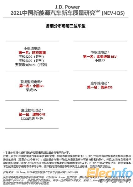J.D. Power 2021年中國新能源汽車新車質(zhì)量研究細(xì)分市場排名