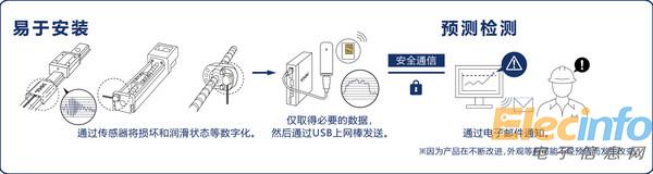 “OMNIedge”將傳感器安裝在機(jī)械要素部件上,利用“THK SENSING SYSTEM”,通過安全的通信網(wǎng)絡(luò),運(yùn)用獨(dú)特的算法收集數(shù)據(jù)進(jìn)行數(shù)字化分析,進(jìn)行狀態(tài)診斷和“預(yù)測性維護(hù)”。提供包括傳感器和驅(qū)動(dòng)器等硬件,以及通信設(shè)備到應(yīng)用程序一體化的服務(wù)。
