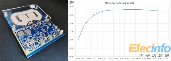 圖一:伏達車載無線充參考設(shè)計NVTREF8040Q及實測充電效率曲線