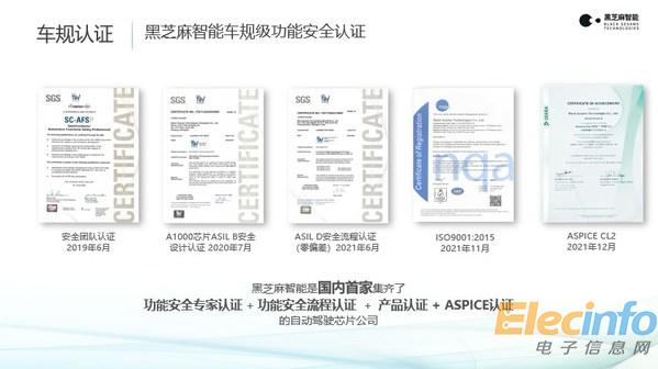 黑芝麻智能創(chuàng)始人兼CEO單記章強(qiáng)調(diào):"黑芝麻智能的所有芯片都是嚴(yán)格按照車規(guī)要求進(jìn)行設(shè)計(jì)開(kāi)發(fā)。芯片‘上車'最重要的就是安全認(rèn)證,我們肯定要‘持證上崗'。"黑芝麻智能已獲得ASPICE CL2車規(guī)級(jí)軟件認(rèn)證、ISO 26262:2018 ASIL D功能安全流程認(rèn)證、ISO26262功能安全產(chǎn)品ASIL B認(rèn)證和AEC-Q100 可靠性認(rèn)證,是國(guó)內(nèi)首家集齊了功能安全專家認(rèn)證、功能安全流程認(rèn)證和產(chǎn)品認(rèn)證的自動(dòng)駕駛芯片公司,構(gòu)建起完善可靠的車規(guī)認(rèn)證體系。