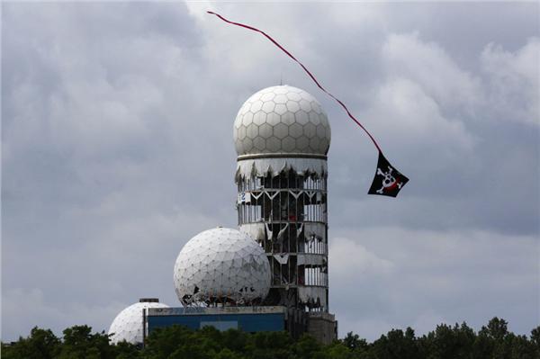 一個風(fēng)箏飛過設(shè)于德國柏林的美國國安局廢棄監(jiān)聽站