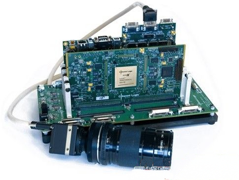 母芯片:圖示位于這塊主板中央的Coherent Logix公司的芯片可以通過(guò)靈活地再編程來(lái)實(shí)現(xiàn)不同的數(shù)據(jù)處理功能,消除了在無(wú)線電、圖像和視頻之間的數(shù)據(jù)處理障礙。該公司稱,該芯片的下一代版本將更加小巧便宜,可適用于手機(jī)。