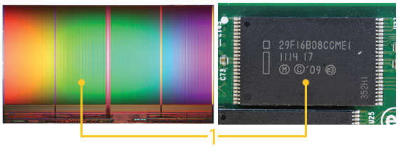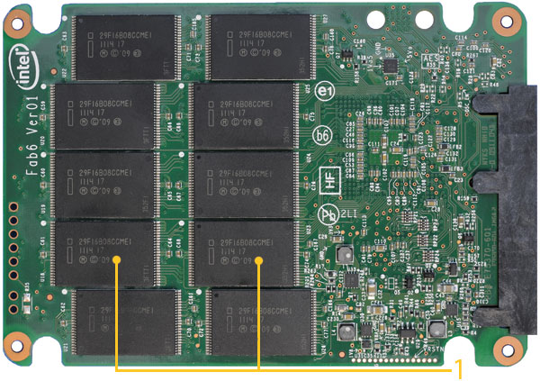 每個(gè)NAND閃存器件封裝包含兩個(gè)堆疊的64Gb、25nm L74A NAND閃存裸片,因此每個(gè)封裝容量為128Gb??偟拈W存容量實(shí)際上是320GB,因此具有很高程度的預(yù)留空間。