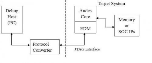 一個debug system包含一個debug host和一個target system.EDM主要的功能就是translate debug host發(fā)出的TAP指令來存取系統(tǒng)memory或是CPU.下圖為基本的debug系統(tǒng)方塊圖。