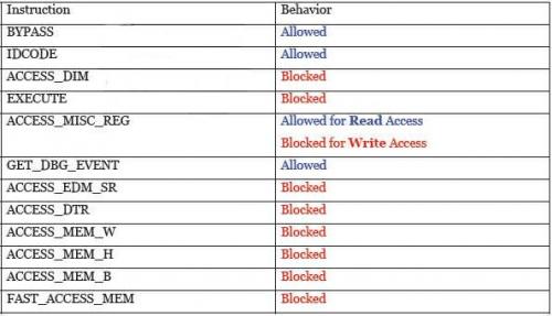 在啟用存取限制功能后,下圖說明出每個TAP指令的行為。
