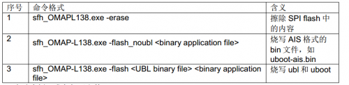 (2) 使用 OMAP-L138_FlashAndBootUtils工具包中的串口燒寫工具(如 sfh_OMAP-L138.exe),通過串口連接,進(jìn)行命令行燒寫。
