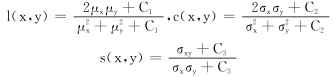 亮度、對(duì)比度和結(jié)構(gòu)信息是與x和y的均值μx、μy,標(biāo)準(zhǔn)差σx、σy或協(xié)方差σxy有關(guān)的量,表達(dá)式分別為: