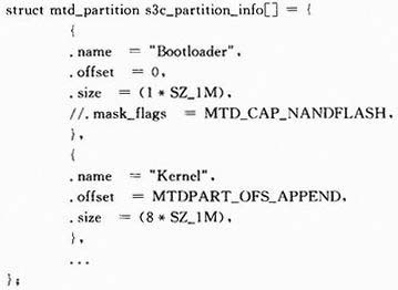 Linux2.6內(nèi)核中,在文件archarmplat-s3cincludeplatPartition.h中定義了分區(qū)信息如下: