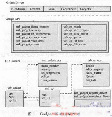 Gadget API層為Gadget定義的一組標(biāo)準(zhǔn)API接口函數(shù),并向上提供編程接口,這一層的存在實(shí)現(xiàn)了將下層UDC驅(qū)動(dòng)和上層Gadget驅(qū)動(dòng)程序的隔離,使得Linux系統(tǒng)中編寫USB設(shè)備側(cè)驅(qū)動(dòng)程序時(shí)能夠把功能的實(shí)現(xiàn)和底層通信分離。
