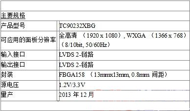 東芝公司(Toshiba Corporation)日前宣布為液晶電視(LCD TV)推出高品質(zhì)圖像處理集成電路“TC90232XBG”,支持LVDS全高清(1920 x 1080)和WXGA (1366 x 768)輸入與輸出。該產(chǎn)品計劃于今年12月投入量產(chǎn)。
