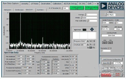 AD7625采用LVDS接口,可實(shí)現(xiàn)業(yè)界具有突破性的動態(tài)性能,信噪比為92 dB(6 MSPS),具有16位(1 LSB)積分非線性(INL)性能。 ADR434 基準(zhǔn)電壓源(4.096 V)為低噪聲、高精度的XFET基準(zhǔn)電壓源,具有較低的溫度漂移。其源電流輸出最高達(dá)30 mA,最大吸電流能力為20 mA。