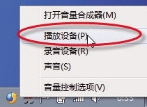 在獨顯模式下,有時同樣無法聽到聲音,此時需右鍵點擊任務欄小喇叭,選擇“播放設備”選項(如圖1),右鍵單擊窗口空白處,選擇“顯示禁用的設備”(如圖2)。