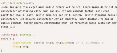 最初的目的只是希望文本內(nèi)容能夠在形狀周圍浮動,為了達(dá)到這個目的,不得不使用shape-outside屬性,就像: