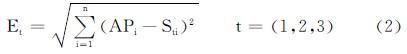 假設有n個AP,m個參考標簽,則AP點接收到的待定標簽的強度量P=(AP1,AP2,…,APn),采集到的第t個參考標簽的強度矢量為St=(St1,St2,…,Stn),則待定標簽和參考標簽St之間的歐氏距離為: