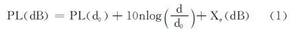 式中:n為路徑損耗指數,與周圍的環(huán)境有關;Xσ是標準差為σ的正態(tài)隨機變量;d0是參考距離,在室內環(huán)境中通常取1 m;PL(d0)為參考位置的信號強度。