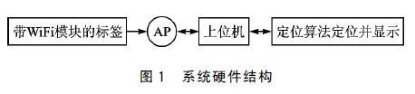 RFID定位可用于倉庫管理、公司人員、物品以及醫(yī)院病人的準確定位。但是由于距離限制了其發(fā)展,所以把無線WiFi技術和RFID技術結合起來,進一步地提高定位的范圍和精度。系統(tǒng)硬件結構如圖1所示。