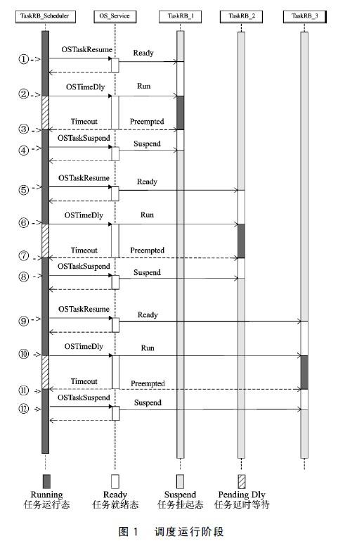 TaskRB_Scheduler的運行分為兩個階段:首先是初始化階段,負(fù)責(zé)所有時間片任務(wù)的創(chuàng)立并確保其處于Suspend狀態(tài);然后是調(diào)度運行階段,如圖1所示。