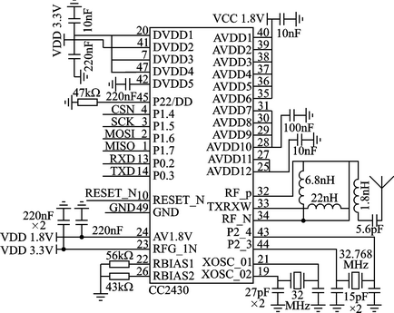 CC2430/CC2431主要外圍電路圖如圖1所示。