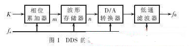一個基本的DDS由相位累加器、波形存儲器ROM、D/A轉(zhuǎn)換器和低通濾波器組成,如圖1所示。