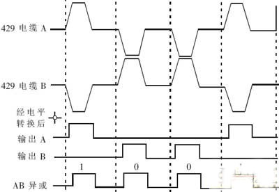 429總線采用雙絞屏蔽線傳輸信息,通過一對雙絞線反相傳輸,具有很強的抗干擾能力。而調制方式則采用雙極歸零制的三態(tài)碼方式,即信息由“高”、“零”和“低”狀態(tài)組成的三電平狀態(tài)調制。429電纜上的信號及經(jīng)電平轉換后的信號如圖1所示。429總線每一個字為32位,它的字同步是以傳輸周期至少4位的時間間隔也就是4位碼字為基準的。