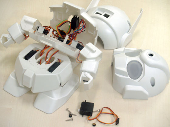 RAPIRO的大腦內(nèi)有一個Raspberry Pi,這是它可以根據(jù)編程內(nèi)容做動作的原因,這個小機器人外觀看起來非??蓯郏袷敲阅惆娴膴W特曼,全身上下一共有12個馬達,一個在脖子部位,一個在腰上,兩只腳分別有兩個馬達,剩下的六個馬達都在兩支胳膊上。