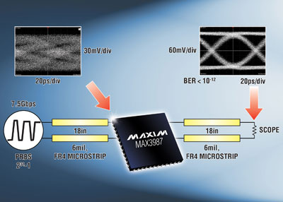 Maxim推出用于銅纜互連的四通道、1Gbps至8.5Gbps信號調(diào)理器MAX3987。器件每個通道的輸入和輸出端可均衡30英寸的FR4信號傳輸以及10米的24AWG電纜,支持高達8.5Gbps的數(shù)據(jù)速率。該款通用器件可用作接收均衡器、預(yù)加重驅(qū)動器或轉(zhuǎn)接驅(qū)動器,能夠放置在信號鏈路的開始、中間或末端。此外,MAX3987還具有一個I2C接口,用于配置每個通道的預(yù)加重電平、輸出擺幅和輸出極性,也可以使用外部引腳對這些特性進行整體配置。MAX3987作為一個多協(xié)議方案便于IP復(fù)用,這種方式允許用戶在多種應(yīng)用中使用同一個設(shè)計。器件非常適合6.25Gbps XAUI、8.5Gbps光纖通道、6.0Gbps SAS/SATA及InfiniBand DDR應(yīng)用。