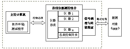 主控計算機及系統(tǒng)軟件提供TP的開發(fā)與運行環(huán)境,并通過控制總線控制測 試測量儀器完成TP的執(zhí)行、取回測試數(shù)據(jù),生成測試報表。