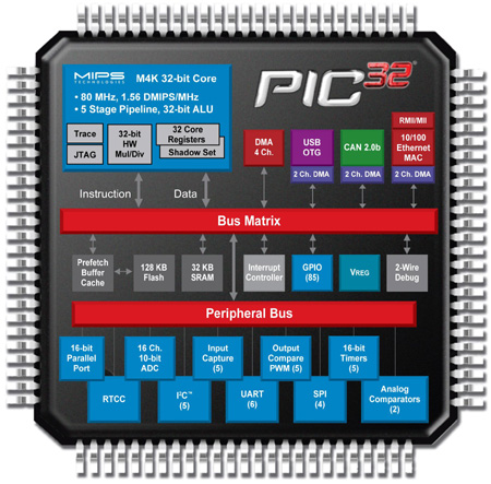 MIPS科技公司市場營銷及業(yè)務(wù)發(fā)展副總裁Art Swift表示:“Microchip最大限度地提高了MIPS32 M4K內(nèi)核的原始性能,同時利用其高靈活性優(yōu)勢創(chuàng)建了一個32位單片機架構(gòu),超越了苛刻的嵌入式設(shè)計要求。Microchip憑借這個全新PIC32系列的性價比及其廣泛的集成外設(shè)設(shè)置,為設(shè)計人員提供了極大的價值?!?