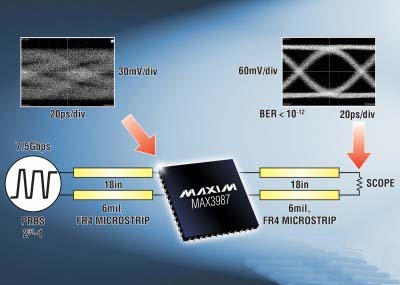 Maxim推出用于銅纜互連的四通道、1Gbps至8.5Gbps信號調(diào)理器MAX3987。器件每個通道的輸入和輸出端可均衡30英寸的FR4信號傳輸以及10米的24AWG電纜,支持高達(dá)8.5Gbps的數(shù)據(jù)速率。該款通用器件可用作接收均衡器、預(yù)加重驅(qū)動器或轉(zhuǎn)接驅(qū)動器,能夠放置在信號鏈路的開始、中間或末端。此外,MAX3987還具有一個I2C接口,用于配置每個通道的預(yù)加重電平、輸出擺幅和輸出極性,也可以使用外部引腳對這些特性進(jìn)行整體配置。MAX3987作為一個多協(xié)議方案便于IP復(fù)用,這種方式允許用戶在多種應(yīng)用中使用同一個設(shè)計。器件非常適合6.25Gbps XAUI、8.5Gbps光纖通道、6.0Gbps SAS/SATA及InfiniBand? DDR應(yīng)用。