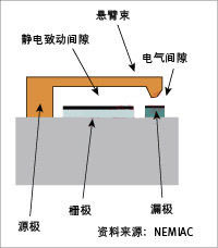 這種繼電器的尺寸可能不到3微米x3微米,開關(guān)時間在10ns數(shù)量級。在商用推廣前能夠證實有數(shù)十億次開關(guān)操作的可靠性非常重要。