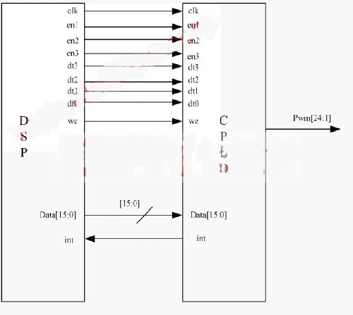 如圖3為DSP與CPLD構(gòu)成的PWM脈沖發(fā)生器的控制框圖。