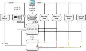 典型的AC/DC電源測試系統(tǒng)包含了程控交流電源、程控電子負載、高精度數(shù)字萬用表、數(shù)字示波器、多通道程控開關(guān)以及工控機和測試軟件。