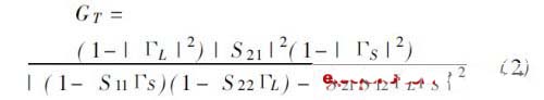 (1) 轉(zhuǎn)換功率增益G T : 當(dāng)放大器的輸入阻抗和信號源的內(nèi)阻共扼匹配時,信號源到放大器之間有最大的功率傳輸,此時有下式成立: