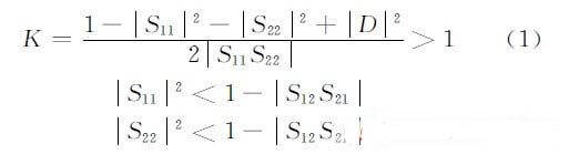 穩(wěn)定性是指放大器抑制環(huán)境的變化(如信號頻率、穩(wěn)定、源和負載等變化時),維持正常工作特性的能力,一個微波管的絕對穩(wěn)定條件是: