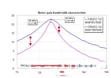 圖3:BGB719N7ESD相較于前幾代的產(chǎn)品(BGB707L7)在FM應(yīng)用上有幾個(gè)方面的增強(qiáng),例如高增益等