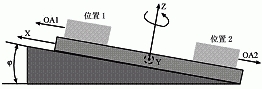 假設(shè)旋轉(zhuǎn)底座相對于Y軸傾斜了角度φ,則分析過程如下,如圖2所示。