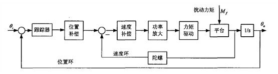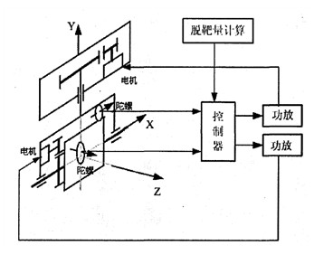 為了實現(xiàn)在機載環(huán)境下迅速捕獲、跟蹤、瞄準(zhǔn)運動的目標(biāo),這就必須建立陀螺穩(wěn)定系統(tǒng)。吊艙陀螺穩(wěn)定系統(tǒng)的作用就是快速而準(zhǔn)確地跟蹤目標(biāo),隔離載體的搖擺。系統(tǒng)框圖如圖1所示。