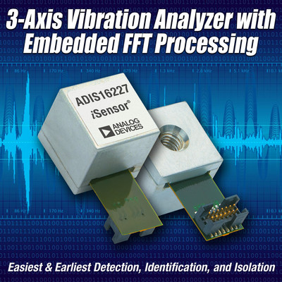 Analog Devices, Inc. (NYSE: ADI),全球領(lǐng)先的高性能信號處理解決方案供應(yīng)商,致力于幫助工業(yè)系統(tǒng)設(shè)計人員通過振動檢測、隔離和校正來提高系統(tǒng)性能并降低維護成本。近日推出的新型 ADIS16227 iSensor? 振動監(jiān)控器為設(shè)備設(shè)計人員提供了一種能夠自主工作的全集成式振動分析解決方案。借助這種振動監(jiān)控器,用戶將能在第一時間檢測、識別并隔離可能的振動源,避免因設(shè)備和軸承磨損導(dǎo)致精度下降或設(shè)備停機。通過嵌入這種小型振動監(jiān)控器,包括風(fēng)輪機、精密工廠自動化和組裝設(shè)備在內(nèi)的各種應(yīng)用都能從自動振動剖面分析中受益。