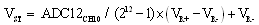 對于12位的ADC模塊,VST可以通過下面的A/D轉(zhuǎn)換公式求得: