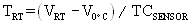 用TRT 表示室溫,VRT表示室溫下溫度傳感器的輸出電壓,則由公式(1)可得: