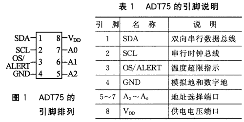 ADT75的引腳排列如圖1所示,引腳說明如表1所列。