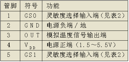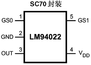 LM94022的管腳排列如圖1所示,各管腳功能如表1所示。